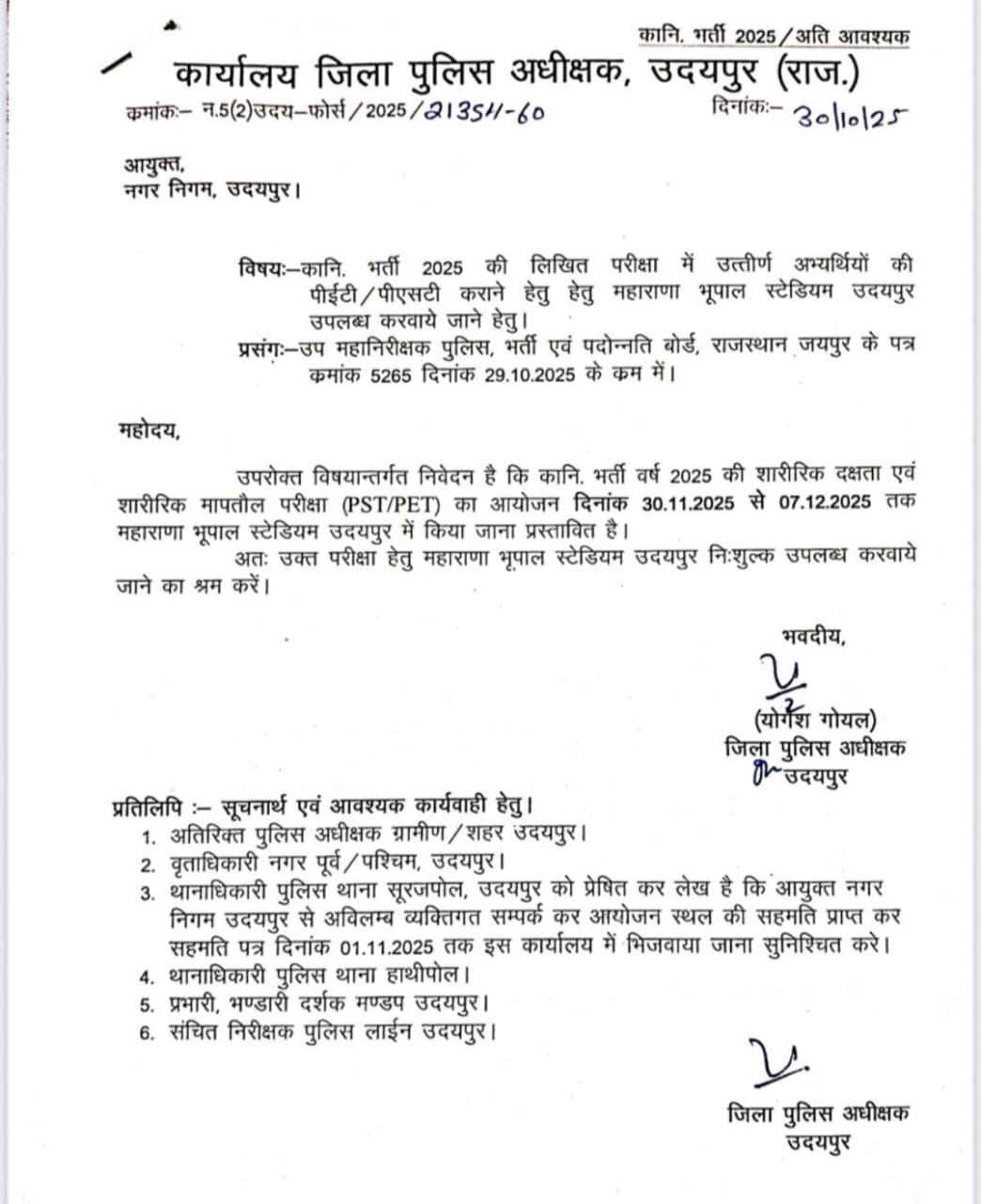 The Rajasthan Police Department organizes the PET/PST at selected police grounds and training academies across districts such as Jaipur, Jodhpur, Udaipur, Ajmer, and Kota. Candidates must reach centers as per the instructions in their admit card.